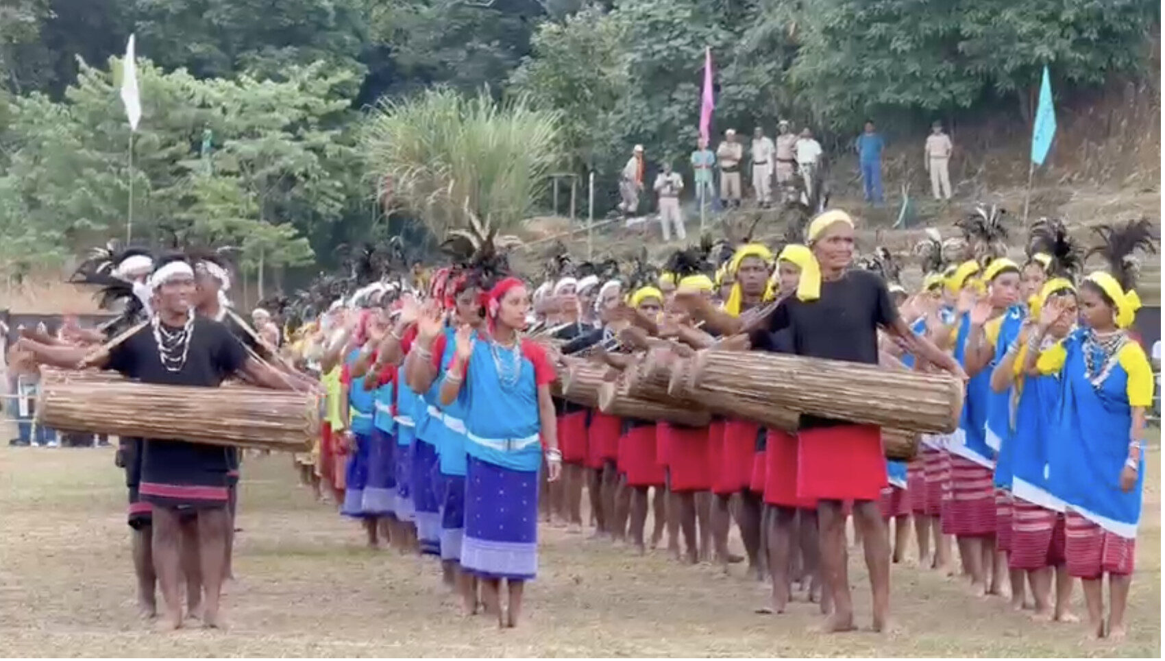 As dusk descended upon the hills, the festival grounds glowed in the warmth of firelight. The drums began again — louder, faster, deeper. Around the fires, people shared laughter, food, and chu. The dancers moved with renewed vigour, their steps tracing stories older than memory itself. Watching from the sidelines, visitors stood in awe, as if witnessing the land breathe in rhythm with its people.