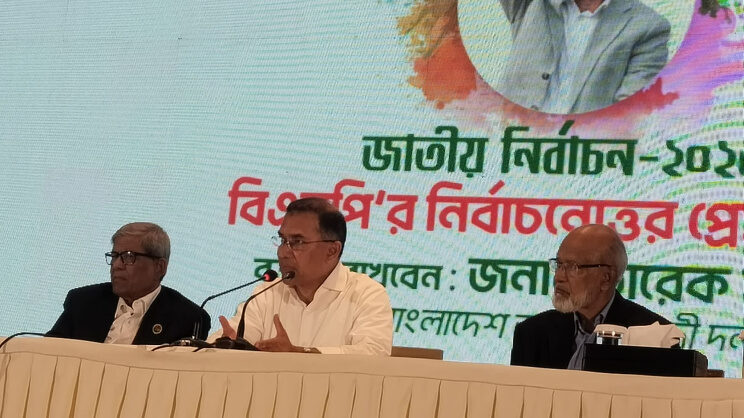 Addressing a packed press conference at Hotel InterContinental Dhaka on Saturday afternoon, Rahman called for unity, restraint and “responsible conduct” from party leaders and supporters. “Now is the time to build the country with the support of political parties and stakeholders,” he said, stressing that national unity is Bangladesh’s strength.
